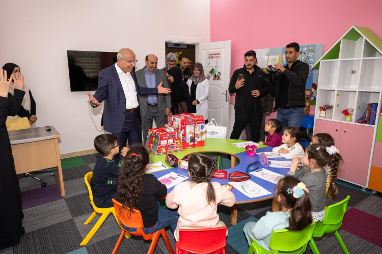 Başkan Sami Er daha sonra Nezaket Okullarında eğitim gören 4-6 yaş çocukları ziyaret etti. Başkan Er, çocuklara eğitici setlerden hediye etti.
