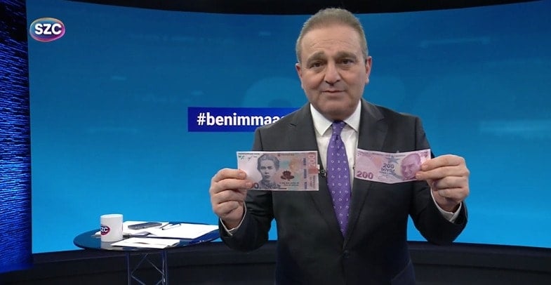 “- Şu Ukrayna parası. Büyük banknot. Bu da meşhur 200 TL’miz. Şimdi bir karşılaştırma yapacağız. Paraları aktarmaya devam edelim. Bir ülkenin onurunu bayrağı, pasaportu, parası temsil eder. Türk Lirası da benim onurumdur. Her şeye rağmen TL benim onurumdur, şerefimdir.