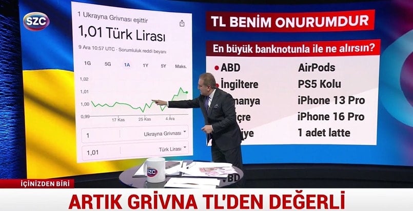Siyasetin, ekonominin gündemi SÖZCÜ TV’de Ekrem Açıkel ile İçinizden Biri programında konuşuluyor. Savaştaki Ukrayna’nın Grivnası TL’yi geçti. Ekrem Açıkel milli onurumuz Türk Lirasının düştüğü durumu canlı yayında anlattı